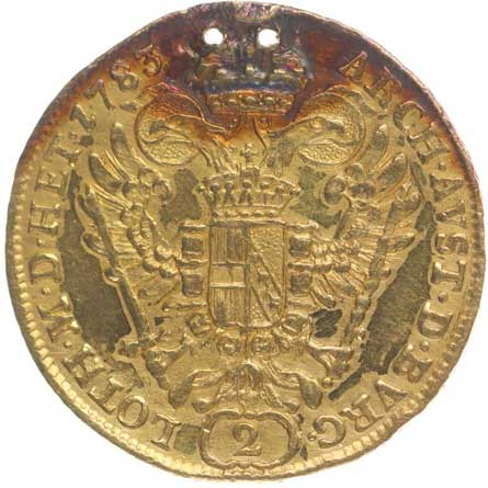 | 12. | 2 Dukát 1783 E, Karlovský Bělehrad, P.17 dvě dírky po korunce | 2/1- | 6000,- | 15000,- |