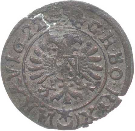 | 416. | 3 Krejcar 1622, Praha-Hübmer, J.1b, MKČ.708 dr.perf.raž. | 1/1 | 300,- | 300,- |