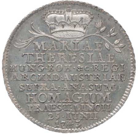 | 535. | Větší peníz na holdování hornorakouských stavů v Linci, 25.6.1743