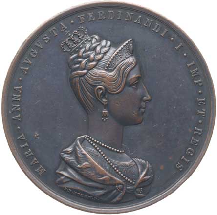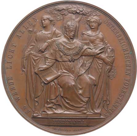 Poprsí zprava, opis / Austria sedící na trůnu, Putti s rohem hojnosti, opis, Sign., Bronz 60 mm |