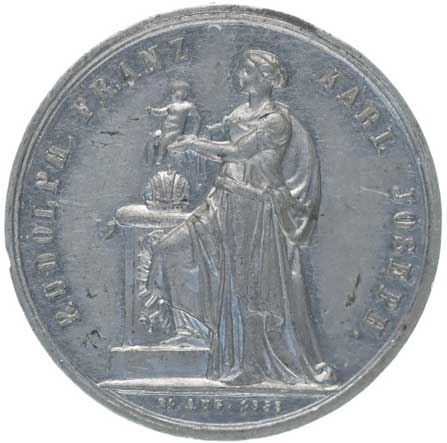 | 573. | Nesign. - medaile na narození arc.Rudolfa Franze Karla Josefa, 1858