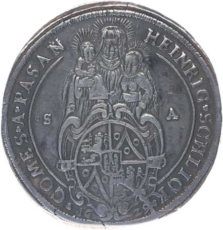 Výjev z bitvy, opis a nápis / Madona korunuje klečícího krále, opis, Ag 32 mm, 4,5 g, Mo.761 zaletov.dírka |