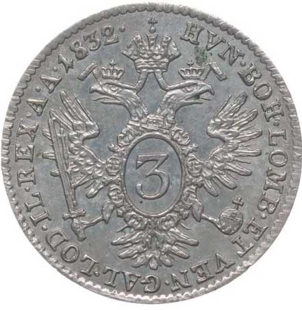 | 832. | 3 Krejcar 1848 A | 1/0 | 500,- | 900,- |