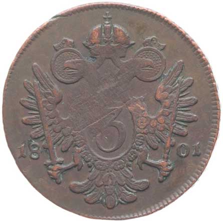 | 822. | Cu 3 Krejcar 1801 F R! | 2/1- | 700,- | 1000,- |