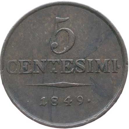 | 1041. | 5 Centesimi 1849 M | 1/1 | 800,- | 1000,- |