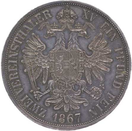 | 1043. | 2 Tolar spolkový 1867 A | tém.0/0 | 40000,- | 44000,- |