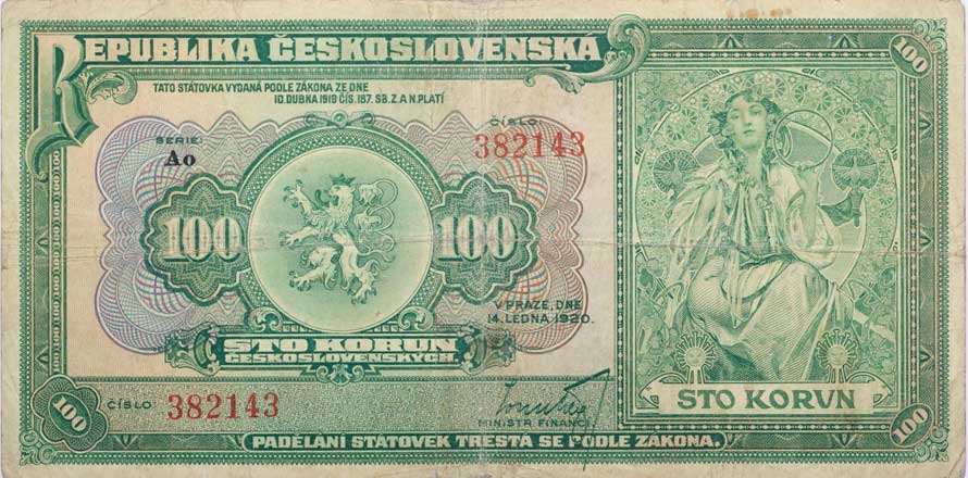 | 1287. | 100 Kč 1920, série Ao, B.16b, Hejz.16b "neperf." | 3- | 4400,- | --.- |