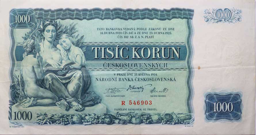 | 1288. | 1000 Kč 1934, série R, B.27, Hejz.27a "neperf." | 3 | 800,- | 1150,- |