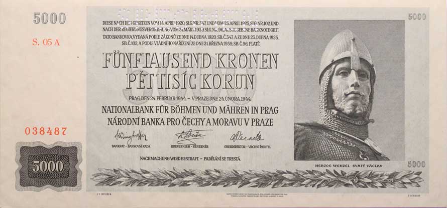 | 1297. | 5000 Koruna 1944 - série 05A, B.41, Hejz.41S1 "SPECIMEN" | N | 2000,- | --.- |