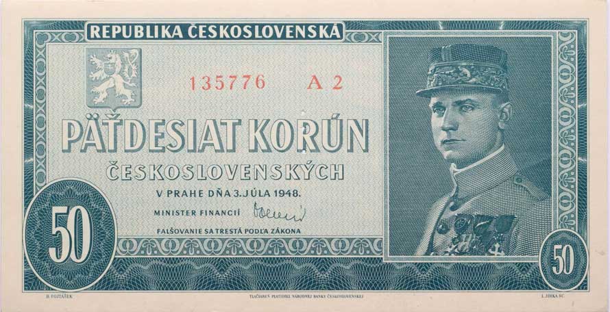 | 1300. | 50 Kčs 1948, série A47, B.81b, Hejzl.82a2 "neperf." | N | 1900,- | 4600,- |