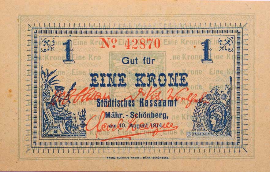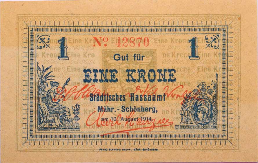 | 3411. | Šumperk (M.Schönberg) město, 1 Krone 10.8.1914, č.42870