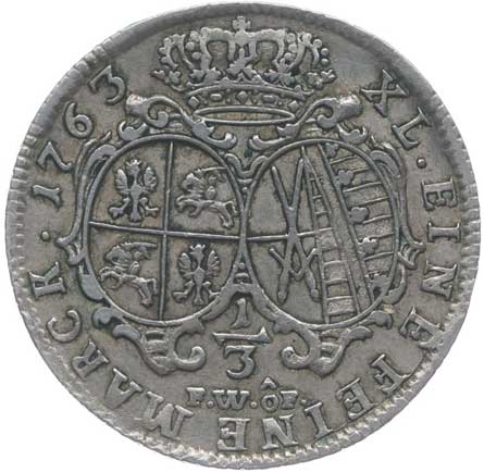 | 3567. | 1/3 Tolaru 1763 F.W.ôF., Drážďany, Sch.181, KM.958, Cr.29 | 2/1- | 360,- | 2800,- |