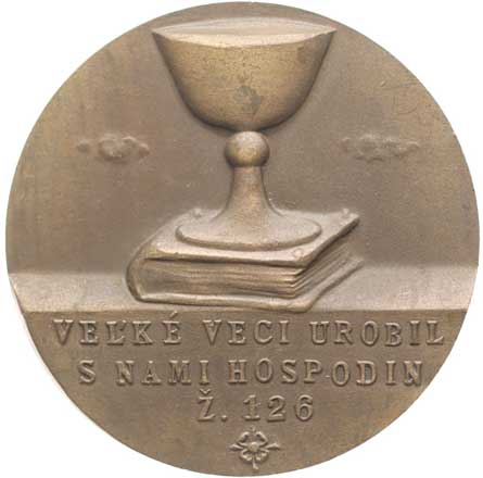 Poprsí čelně mírně zprava, opis / ve styliziv.kříži čtyři denáry Sign., Mosaz 50 mm certifikát |