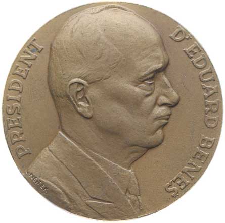 Portrét prezidenta čelně, nápis "E" / skupina pražských historických budov, opis, Sign., Postř.tombak 40 mm, Nov.09.015a R! |