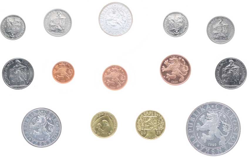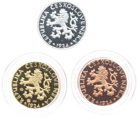 75. J.Šejnost - sada návrhů čs.mincí 1920: 1, 2, 5 Stot. - CuSnNi,