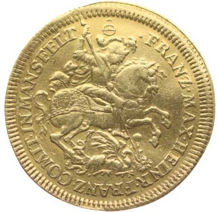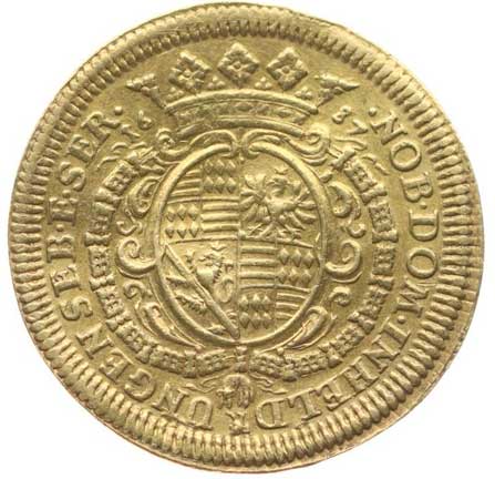 38. Dukát 1687, korunovaný knížecí znak, opis /