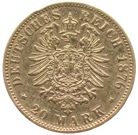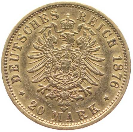41. 20 Marka 1876 D, KM.504, J.197 vl.škr.v av. 1/1 12000,- --.-