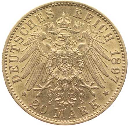 50. 20 Marka 1897 A, KM.521.1, J.252 tém.0/0 12000,- --.-