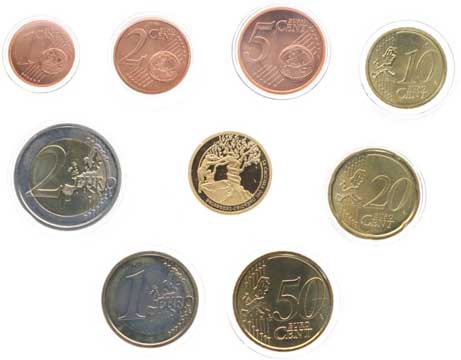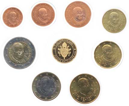 papežský znak, opis, Punc.999 Au 3,16 g (1/10 unce), + sada euromincí