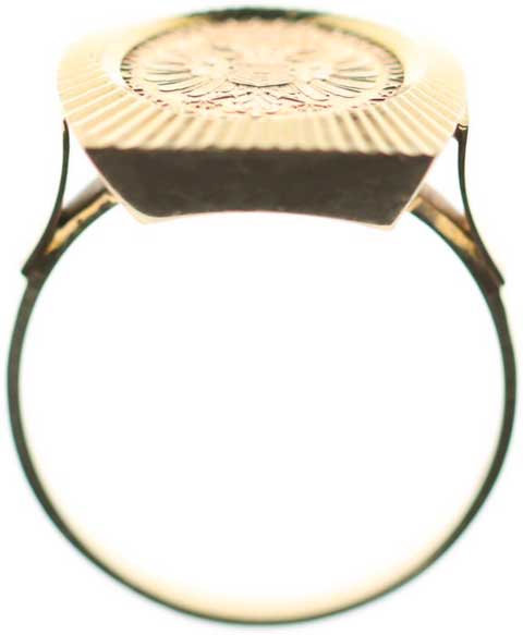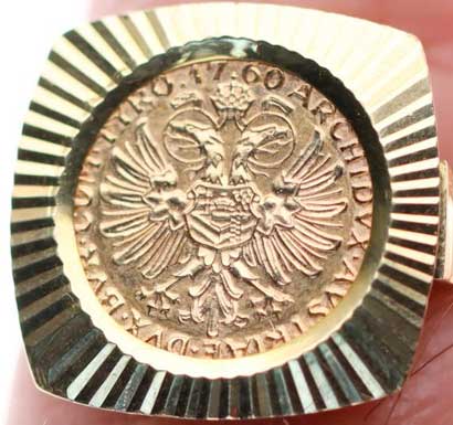 85. Au prsten se vsazenou medailí (vymyšlenou) Marie Terezie