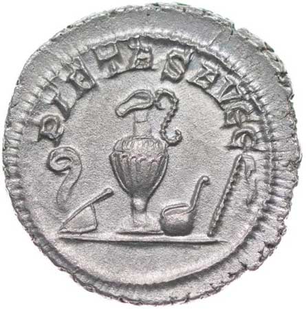 104. AR Denár, Rv:"SEVERI AVG PII FIL", obětní nádoba