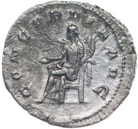 114. AR Antoninianus, Rv:"FORTVNA REDUX", sedící Fortuna zleva,