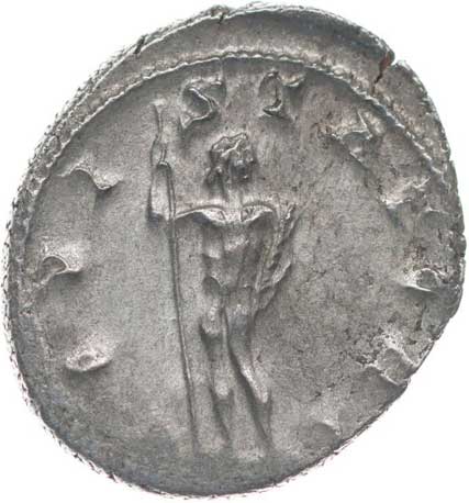 115. AR Antoninianus, Rv:"IOVI.STATORI.", stojící Jupiter zprava