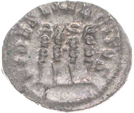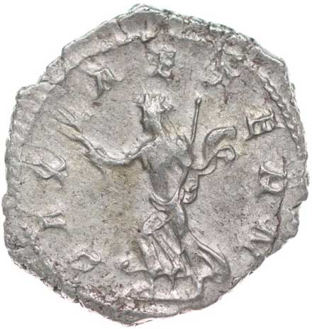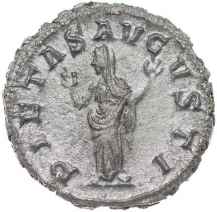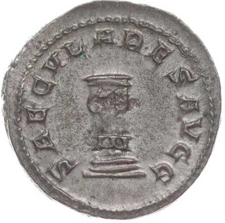 169. AR Antoninianus, Rv:"PIETAS AVG", stojící Pietas u oltáře s nádobou