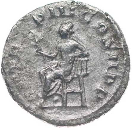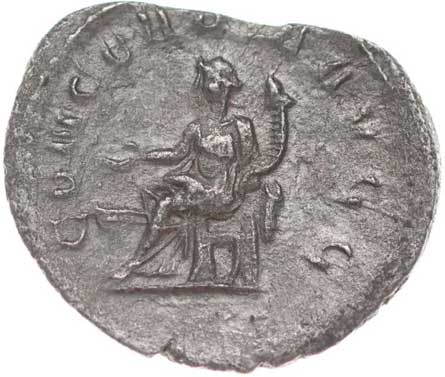 109. AR Antoninianus, Rv:"CONCORDIA.MILIT.", sedící Concordia