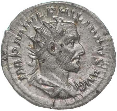 131. AR Antoninianus, Rv:"P.M.TR.P.III.COS.II.P.P.", stojící Gordianus