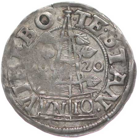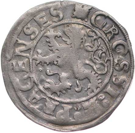 | 203. | Haléř se čtyřrázem, Kutná Hora, česká koruna (z let 1384-1419)