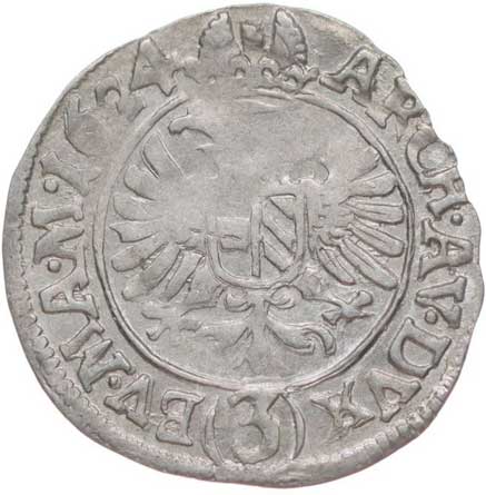 | 281. | 3 Krejcar 1629, Praha-Hübmer, jako J.28c, jako MKČ.760,
