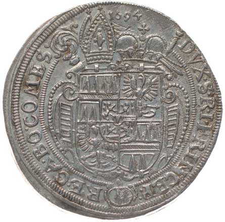 485. 15 Krejcar 1694, ŠM.47-A-13, Höll.94.1.1 0/0 2200,- --.-