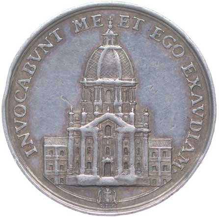Portrét zprava, opis / pohled na chrám, 3řádk.nápis v úseči, opis