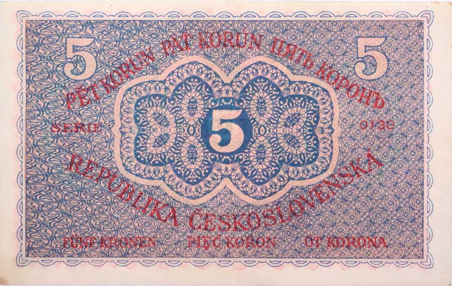 | 1143. | 5 Kč 1919, série 0130, B.8, Hejzl.8a - dobový padělek - pravděpodobně