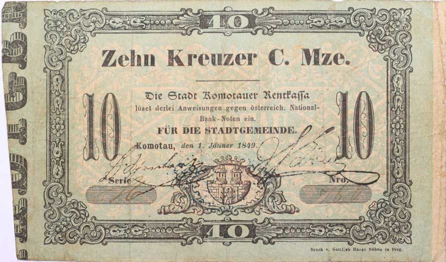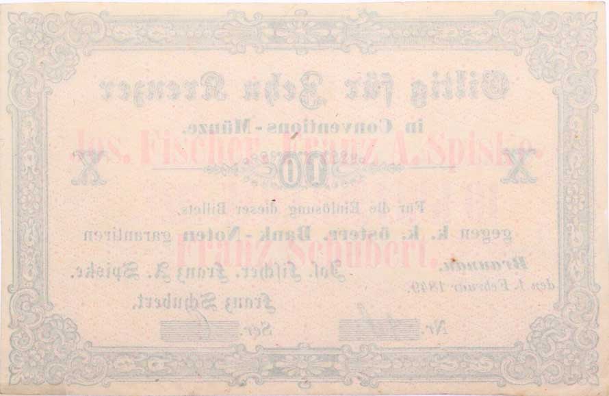 | 1151. | Broumov (Braunau), 10 Krejcar 1.2.1849, J.Fischer, F.A.Spiske,