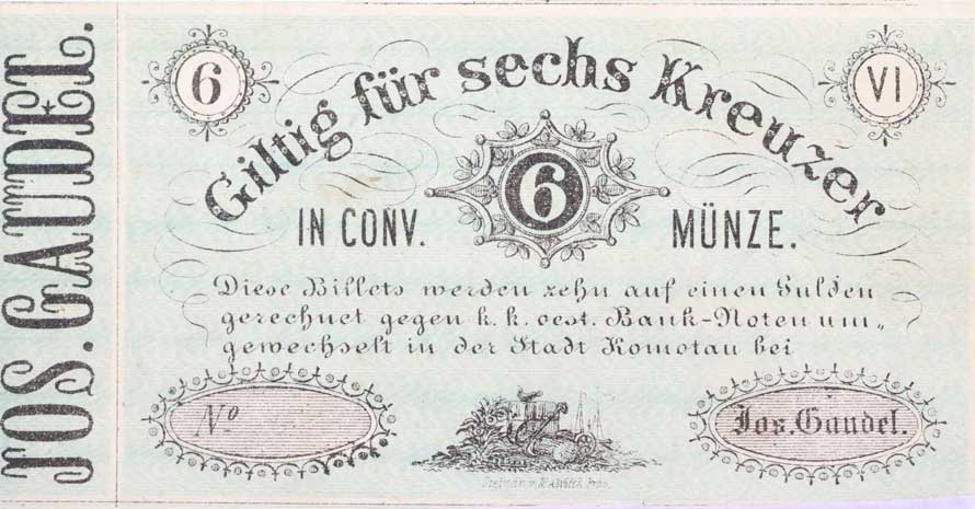 | 1150. | Broumov (Braunau), 6 Krejcar 1.2.1849, J.Fischer, F.A.Spiske,