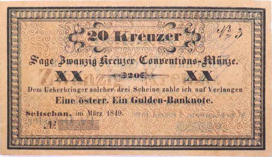 | 1168. | Sedlčany (Seltschan) - 20 Kr.C.M. III.1849, Fr.Drässler