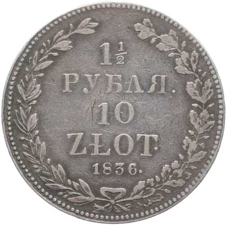 | 1310. | 10 Zlotych (1 1/2 Rubl) 1836 NG, KM.134, Uzd.4050 skup.I-A/a | -1/2 | 1000,- | --.- |