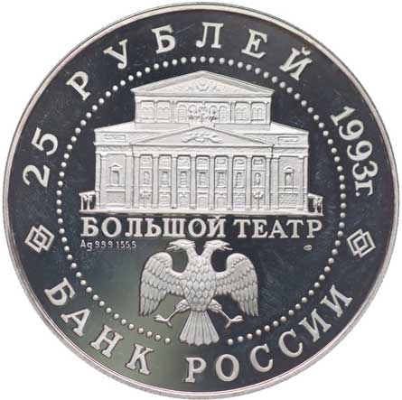 | 1318. | 25 Rubl 1993 - ruský balet, Punc.999, Ag 60 mm, 5 unce 155,8 g