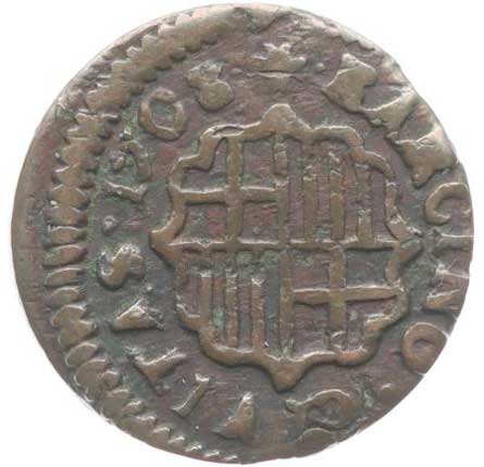Spojené ruce drží cadecus, znak Krista, vročení, opis / španělský znak, opis, Cu 30 mm, van Loon.II/74, Dugn.3670 R! |
