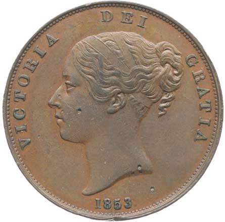 | 1326. | 1/2 Penny 1853, KM.726, S.3949 | 1/1 | 300,- | --.- |