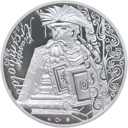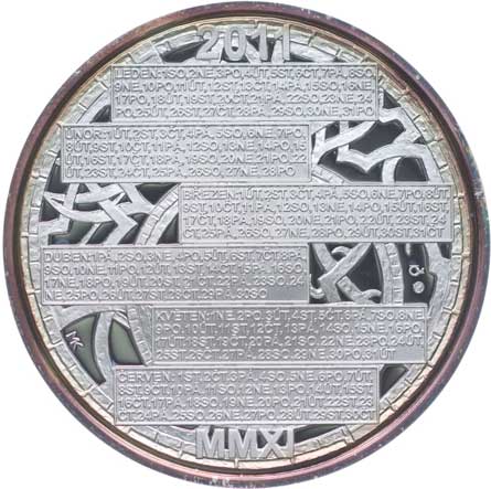 Poprsí čelně, opis / mikroskop s buňkami, opis Punc.999 Ag 50 mm, 42 g, náklad 500 ks orig.tue + kapsle + certifikát |