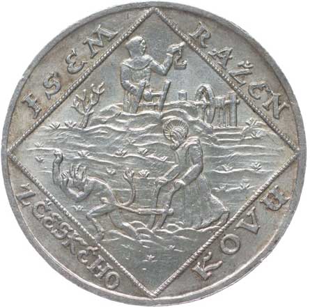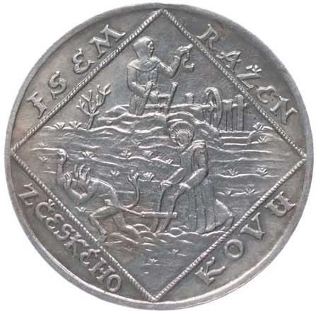 Sv.Prokop orá s čertem, havíř, opis / státní znak, Sv.Václav s rytíři, Sign., Punc.987, Ag 34 mm, 20.1 g |
