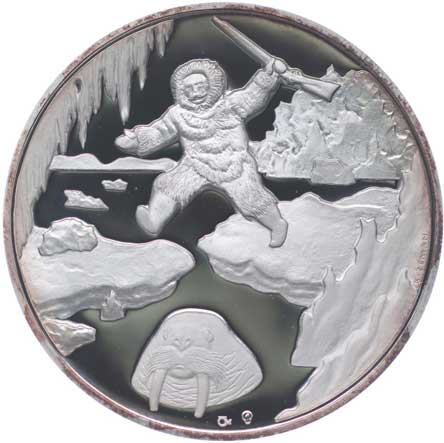 polárník přeskakuje mezi krami, b.l. (2002), Sign., Punc.999 Ag 50 mm, 41,98 g, náklad 70 ks, KZ.155 orig.kapsle |