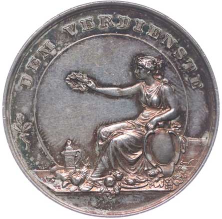 Sedící žena s věncem a štítem, opis / 5řádk.nápis ve věnci Ag 40 mm, 27,20 g |