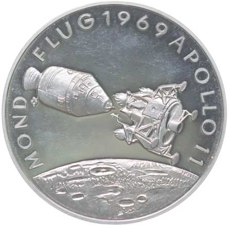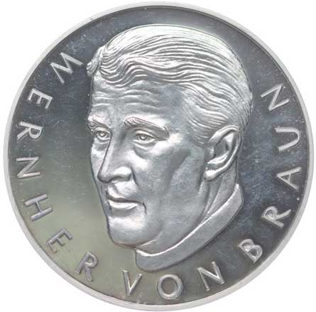 Portrét Wernera von Brauna mírně zleva, opis / lunární modul nad měsícem, opis, Punc.1000 Ag 39,5 mm, 24,78 g |