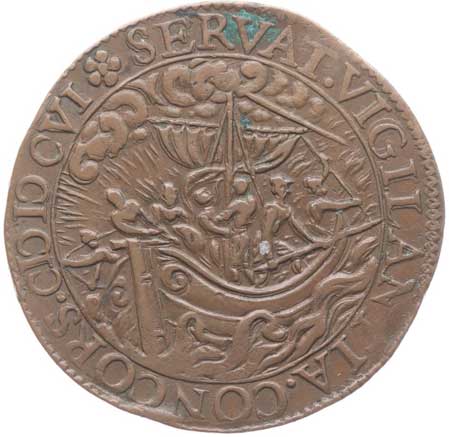 Loď zmítaná bouří, opis / čtyřřádkový nápis Cu 30 mm, van Loon.II/24, Dugn.3611 R! |