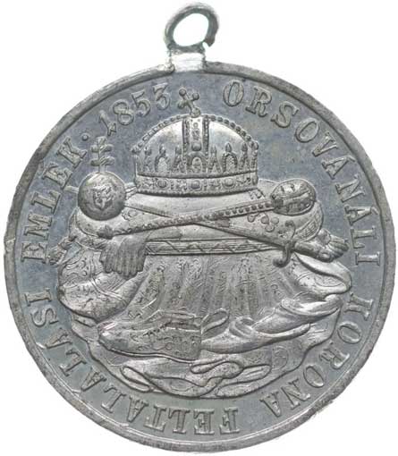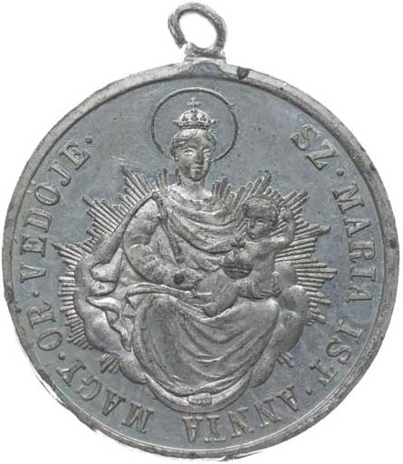 Uherská koruna s insigniemi na bibli, maďarský opis / madona, maďarský opis, Sn 29 mm orig.raž.ouško R! |