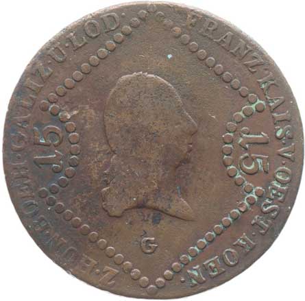 | 1829. | Cu 15 Krejcar 1807 G, minc.Nagybanya | -2/2- | 700,- | --.- |